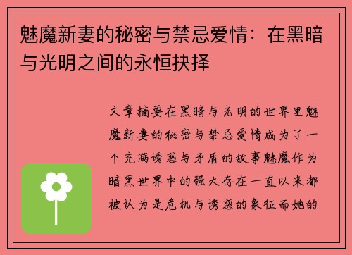 魅魔新妻的秘密与禁忌爱情:在黑暗与光明之间的永恒抉择